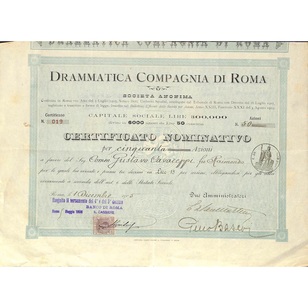 CERTIFICATO NOMINATIVO PER 50 AZIONI