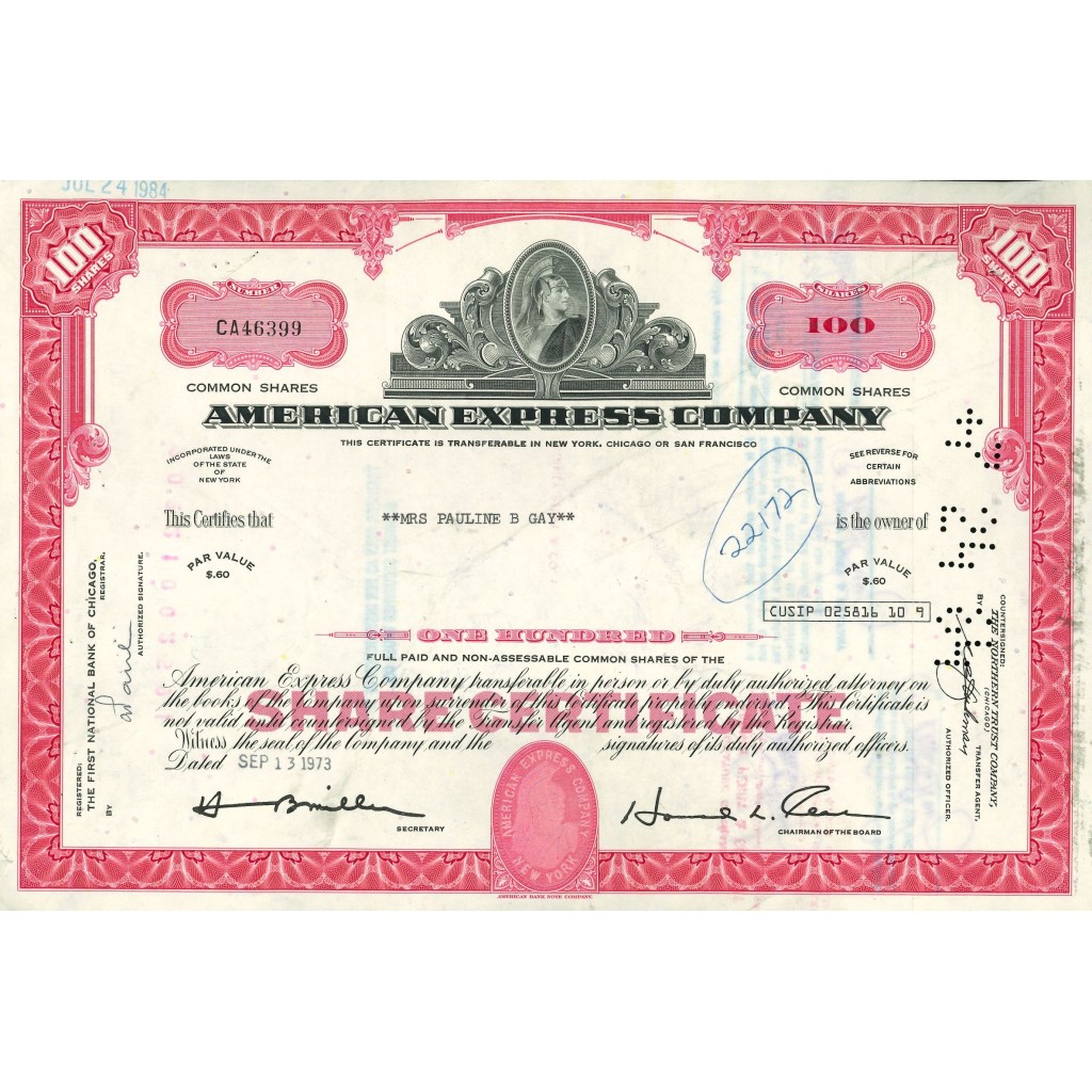 1972 - AMERICAN EXPRESS COMPANY - 100 SHARES