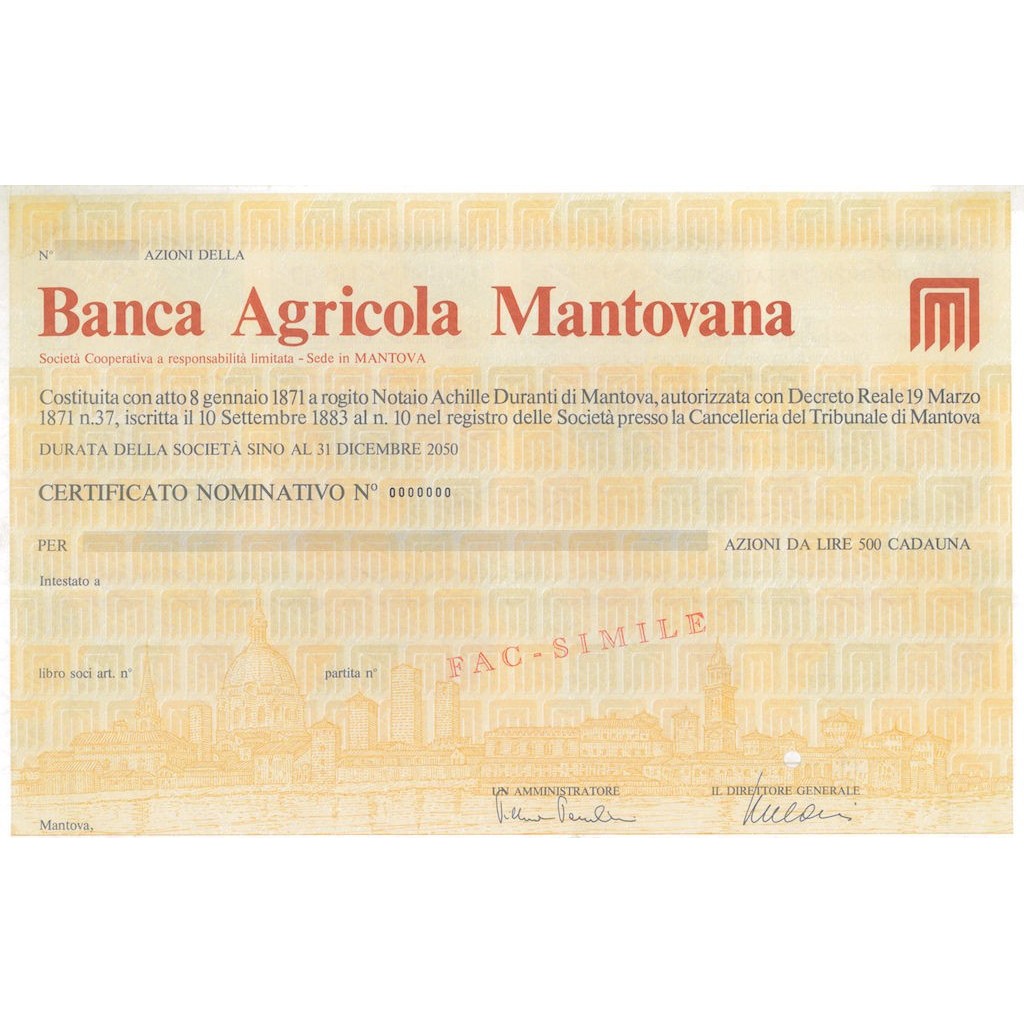 BANCA AGRICOLA MANTOVANA - AZIONI 1871