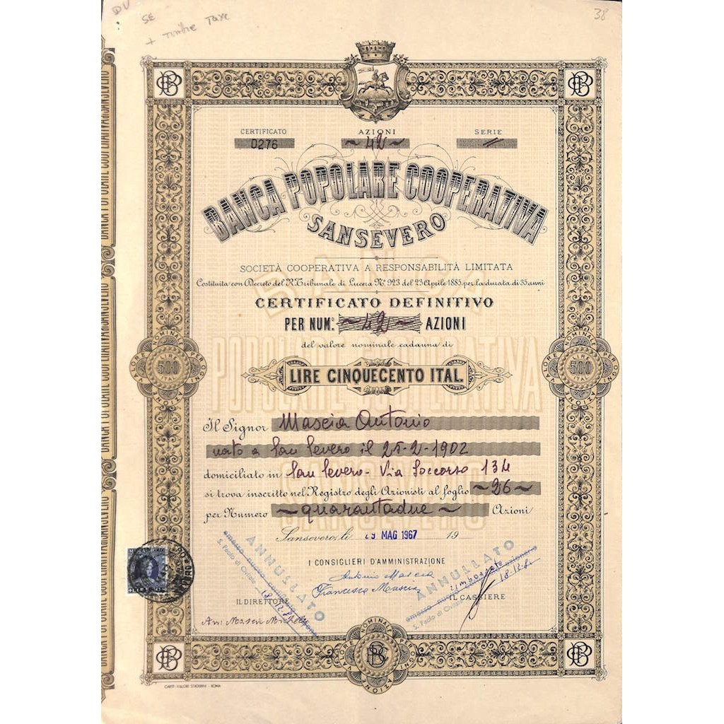 CERTIFICATO DEFINITIVO PER AZIONI