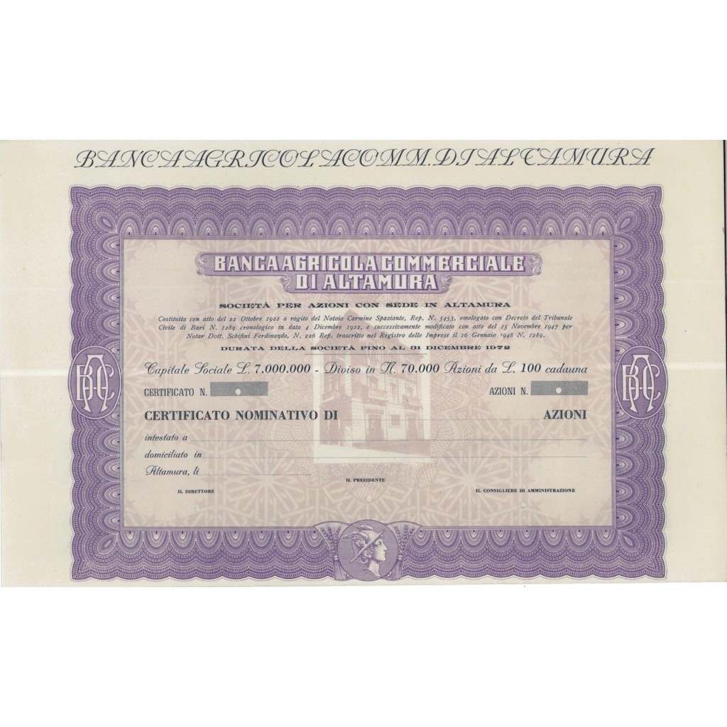 CERTIFICATO NOMINATIVO DI AZIONI