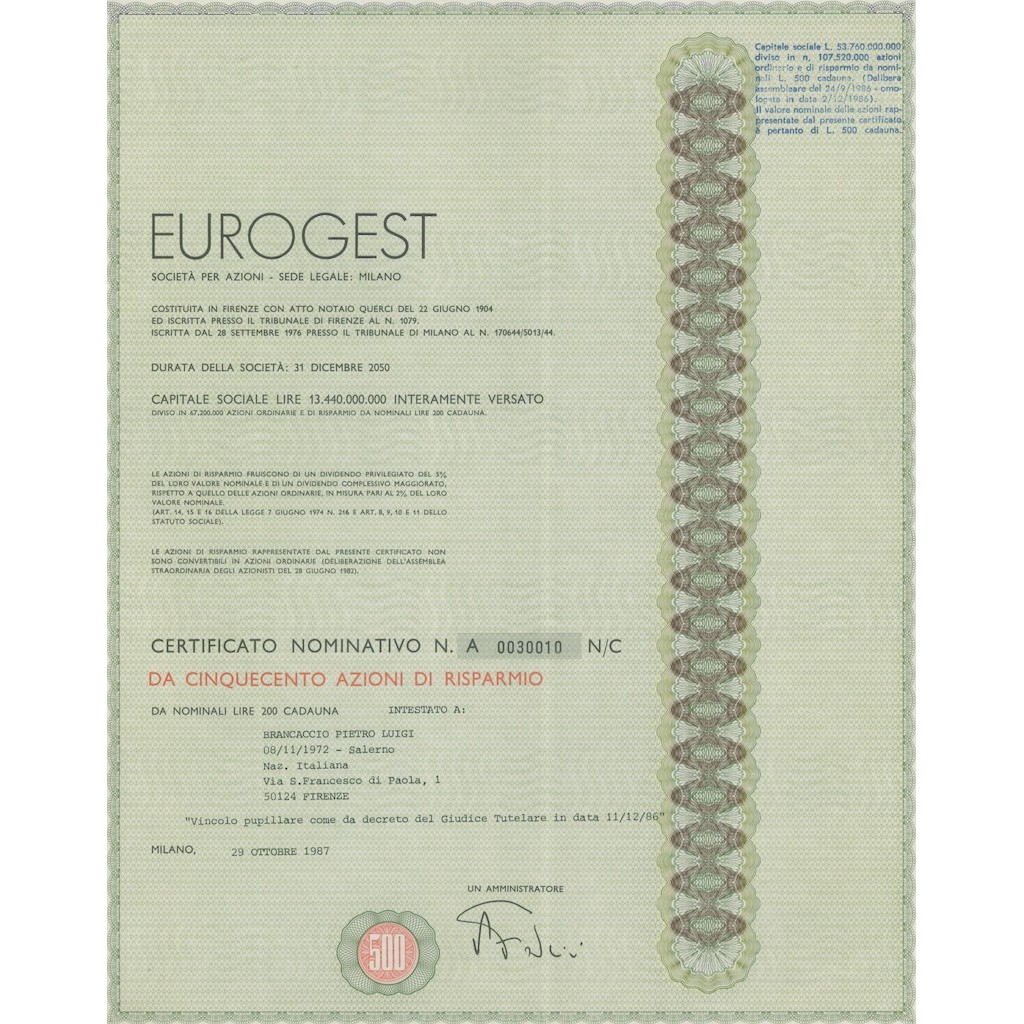 EUROGEST - 500 AZIONI DI RISPARMIO MILANO 1987