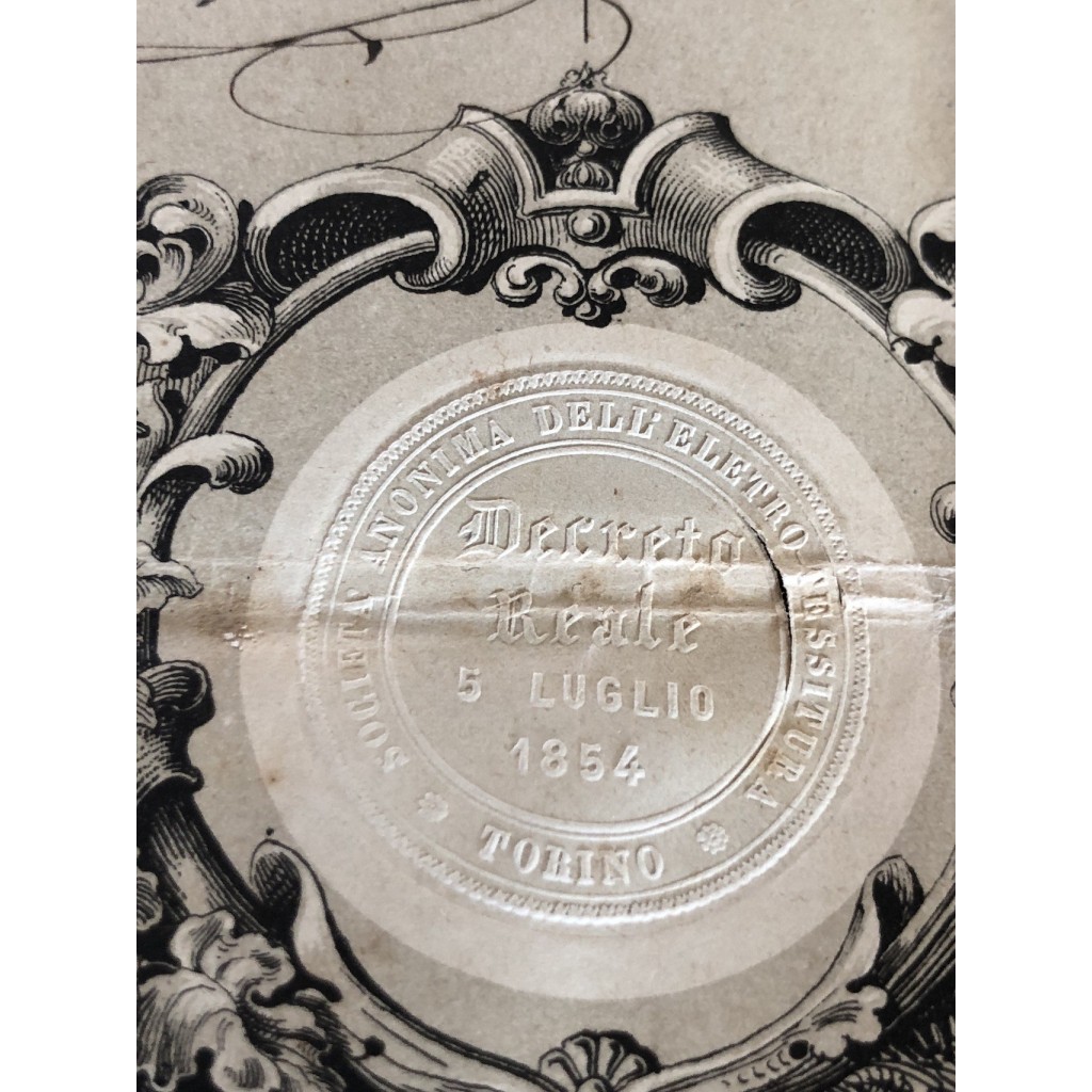 The bearer title of which we are dealing bears the autograph signatures of Bonelli and Philippe Dupré, a well-known exponent of the textile industry in Piedmont.