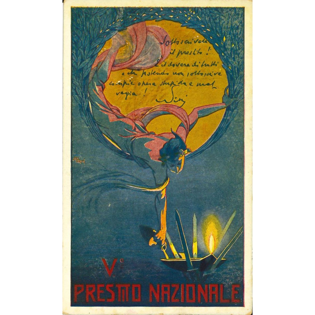 Cartolina originale storica 9 x 14 cm emessa per il V Prestito nazionale