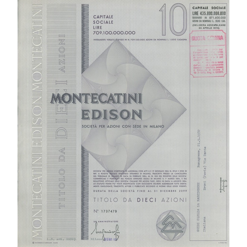 La Montecatini Edison S.p.a., from 1966 to 1969, abbreviated then in Montedison S. Active mainly in the chemistry, he had but interests in numerous other sectors (pharmaceuticals, energy, metallurgy, agri-food, insurance, publishing).