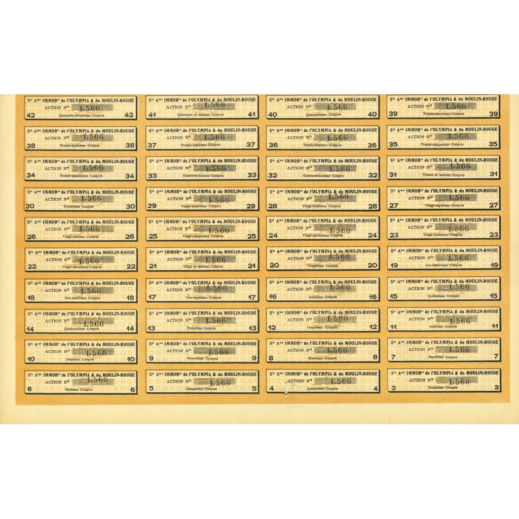 The original headquarters of the theater, which was burning in 1915, had been co-founded in 1889 by Charles Zidler and by Joseph Oller (the latter was also owner of Paris's Olympia). Located near Montmartre in the Pigalle district, on Boulevard de Clichy, the room became particularly famous for the presence of a red windmill on the roof of the structure, which precisely gave its name to the room.