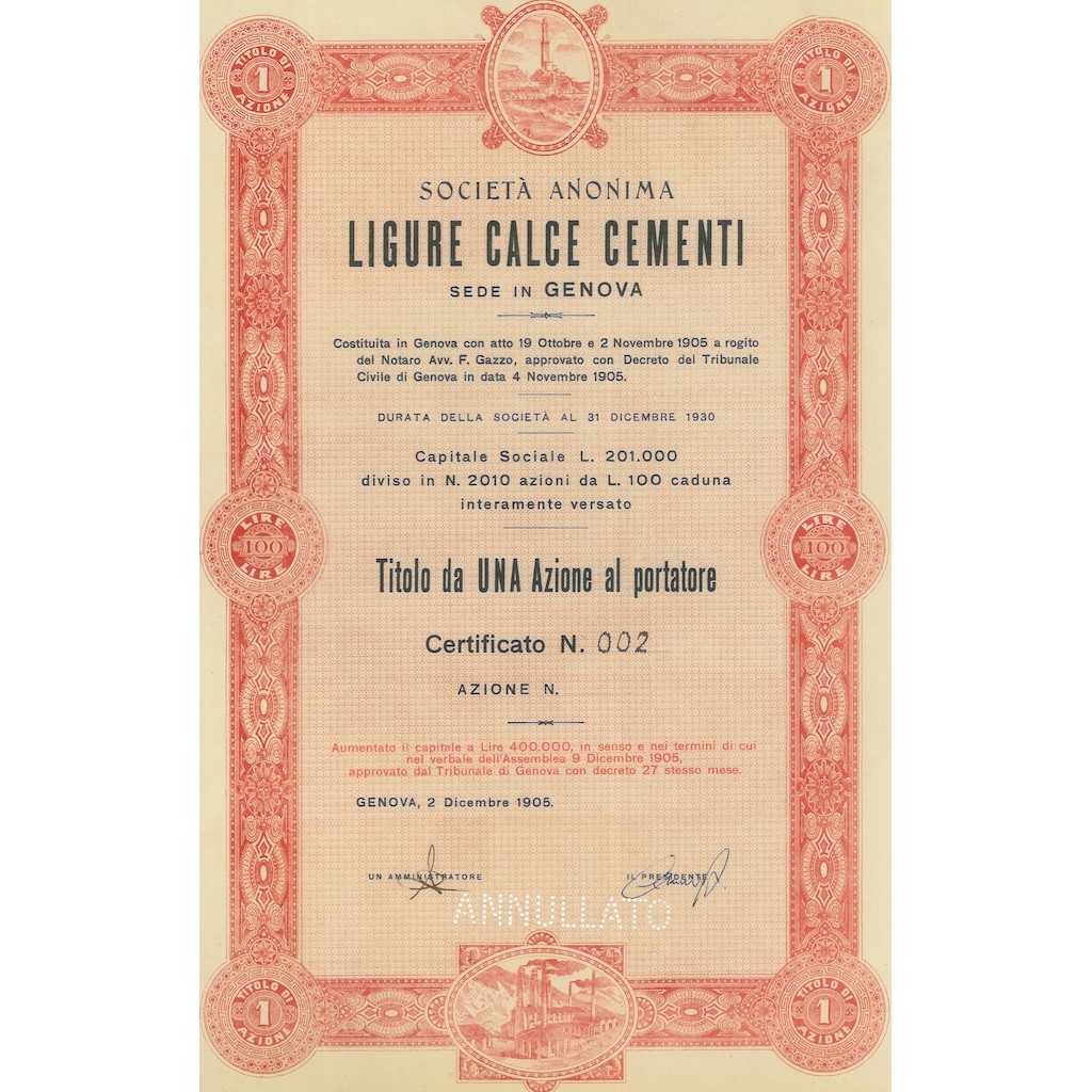 SOCIETA' COSTITUITA A GENOVA CON ATTO 19 OTTOBRE 1905