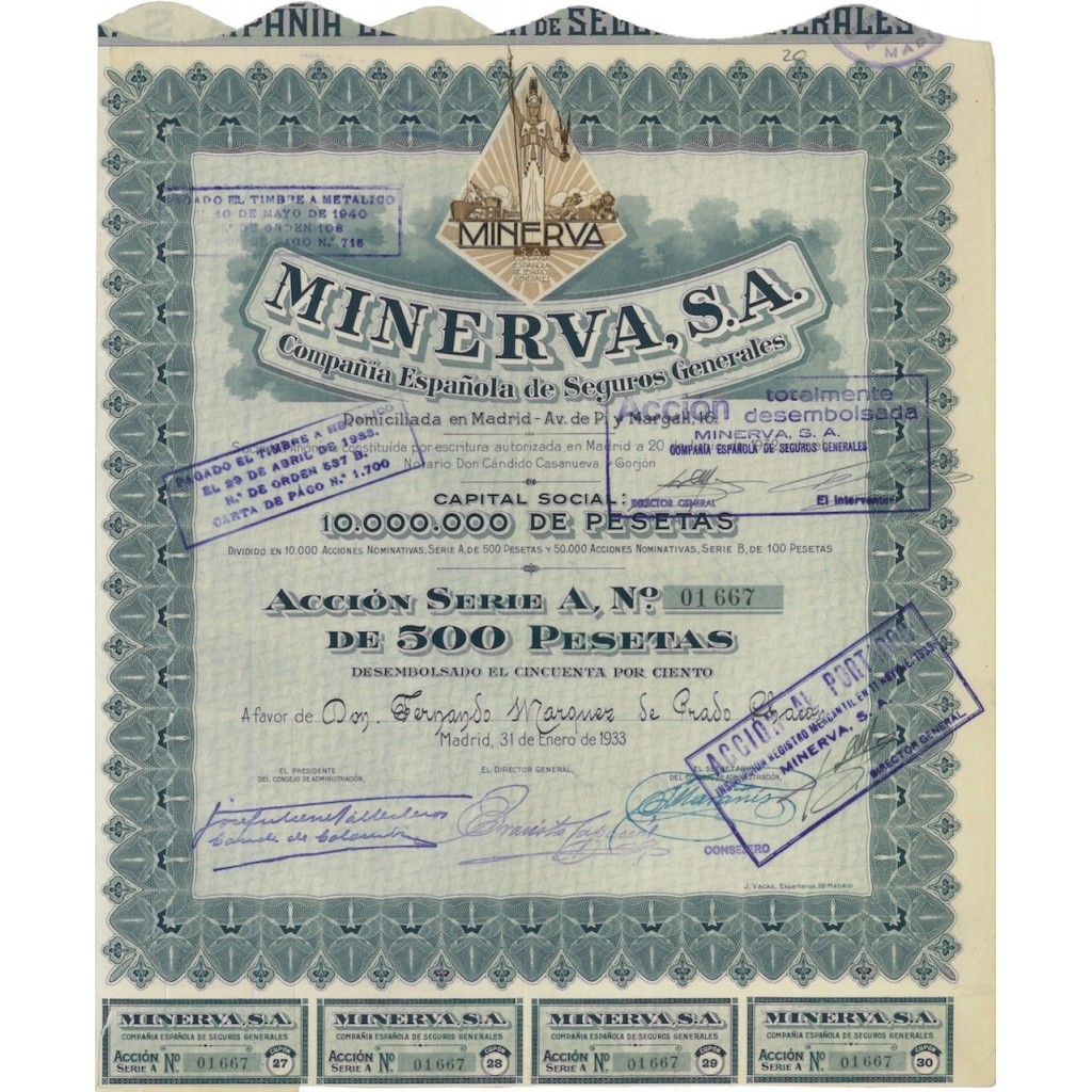 MINERVA, S.A. 1 AZIONE - 1933
