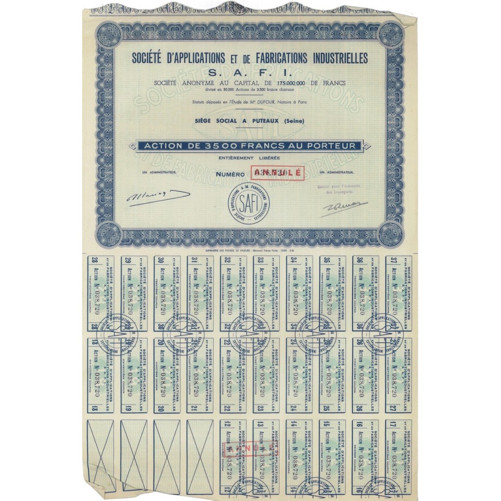 UNA AZIONE AL PORTATORE DI 3500 FRANCHI