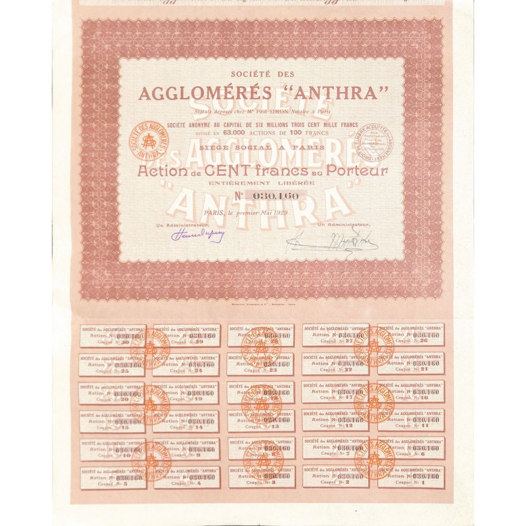 1929 - AGGLOMÉRÉS ANTHRA SOC. DES