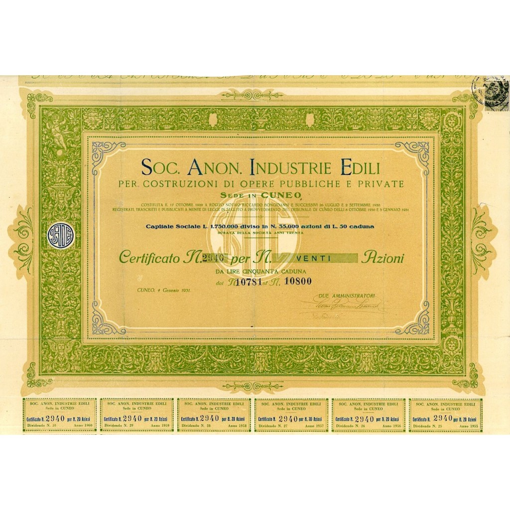 1931 - INDUSTRIE EDILI PER COSTRUZ. DI OPERE PUBBL. E PRIVATE SOC. ANON.