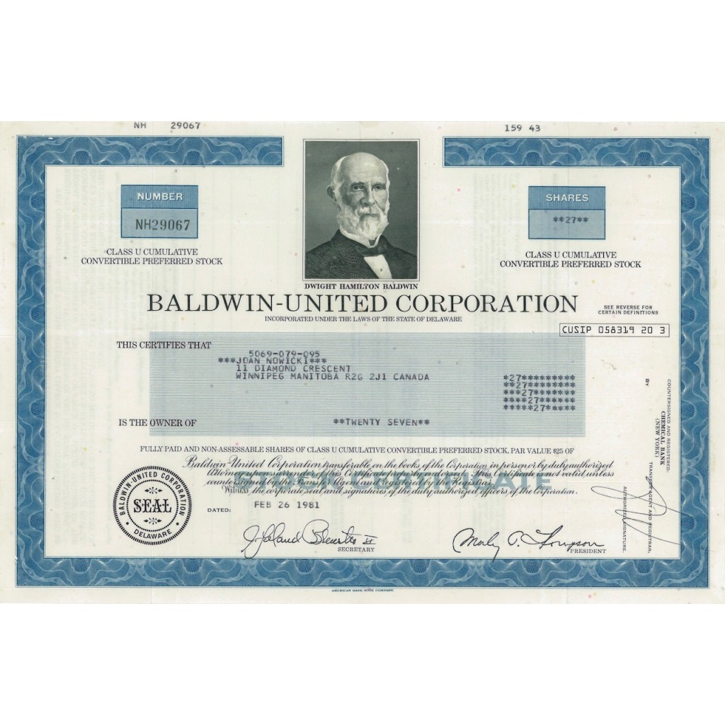 BALDWIN-UNITED CORPORATION - 27 AZIONI - 1981