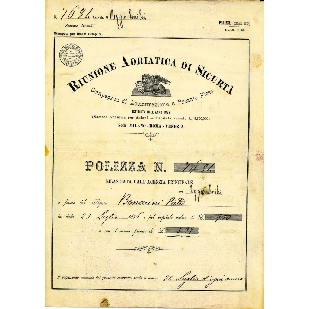 1886 - RAS RIUNIONE ADRIATICA DI SICURTA' - INCENDIO - REGGIO EMILIA