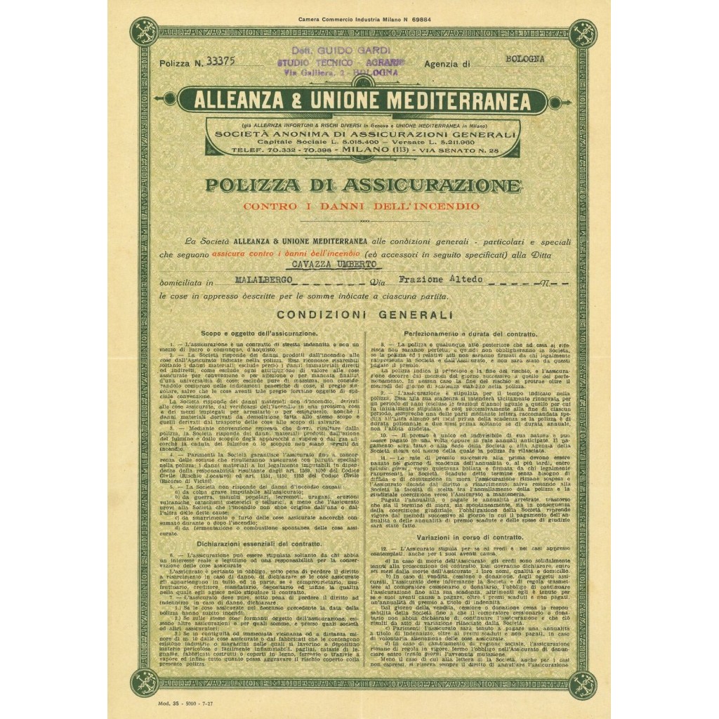 1927 - ALLEANZA & UNIONE MEDITERRANEA - INCENDIO - MILANO
