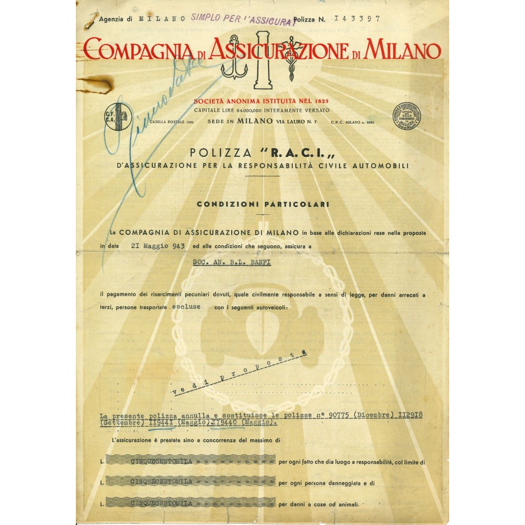 1943 - COMPAGNIA DI ASSICURAZIONE DI MILANO - RESPONSABILITA' CIVILE - MILANO