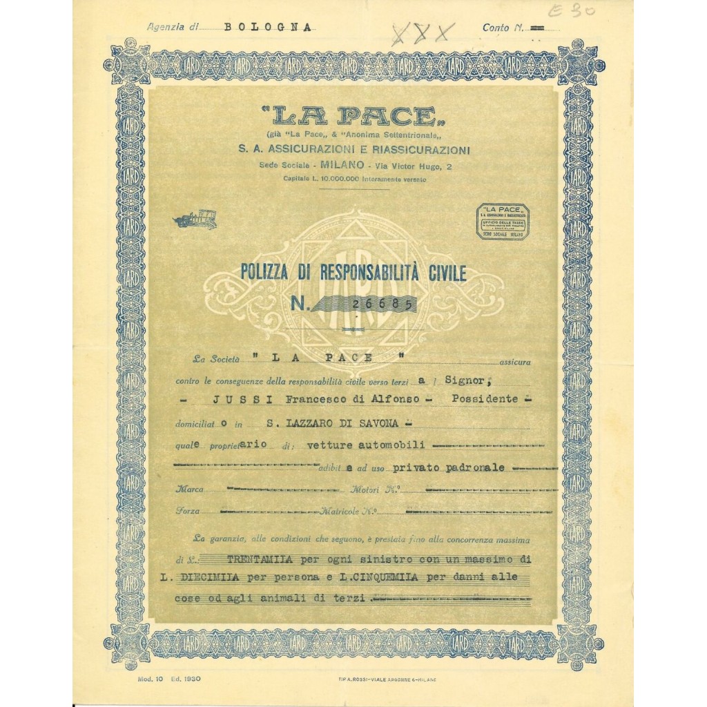 1937 - LA PACE - RESPONSABILITA' CIVILE - MILANO