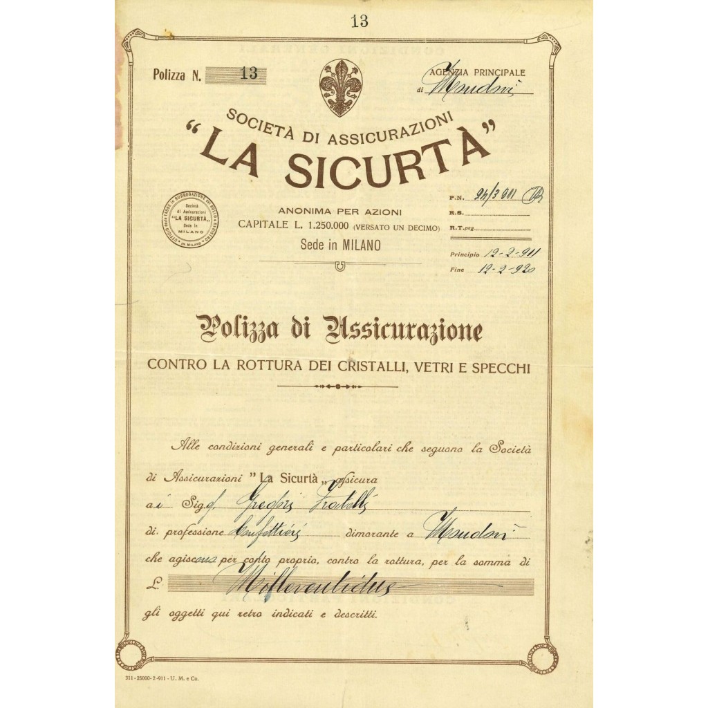 1911 - LA SICURTA' - CRISTALLI - MONDOVI'