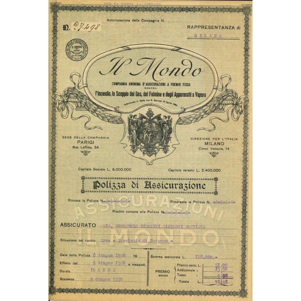 1920 - IL MONDO - INCENDIO - MILANO