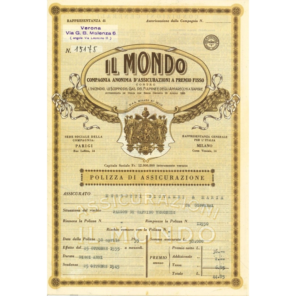1935 - IL MONDO - INCENDIO - VERONA
