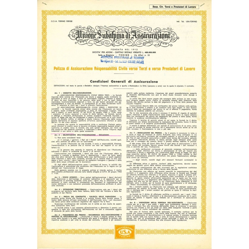 1960 - UNIONE SUBALPINA DI ASSICURAZIONI - RESPONSABILITA' CIVILE - TORINO