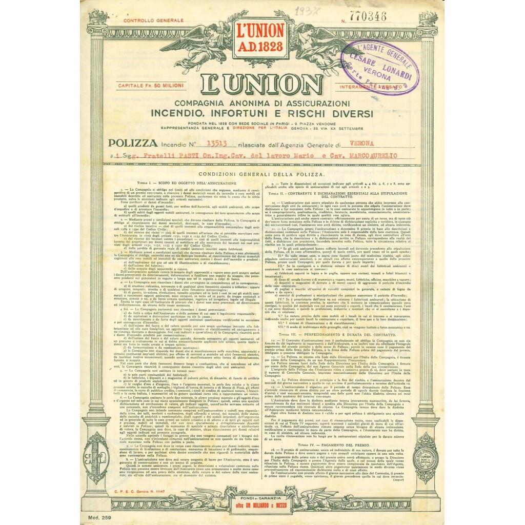1937 - L' UNION - INCENDIO - VERONA