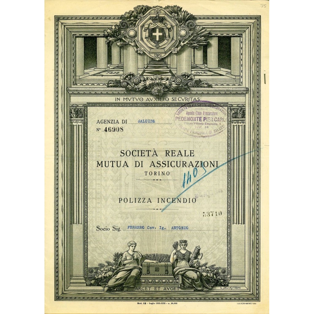 1937 - REALE MUTUA DI ASSICURAZIONI SOC. - INCENDIO - SALUZZO