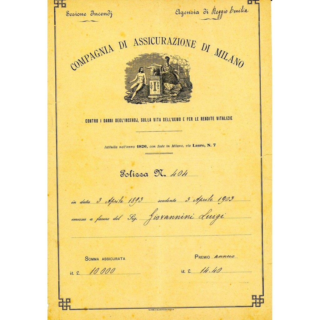 1893 - COMPAGNIA DI ASSICURAZIONE DI MILANO - INCENDIO - REGGIO EMILIA