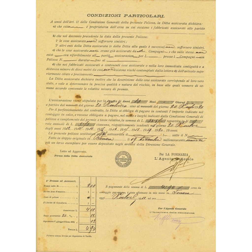 1911 - LA FONDIARIA - INCENDIO - FERRARA
