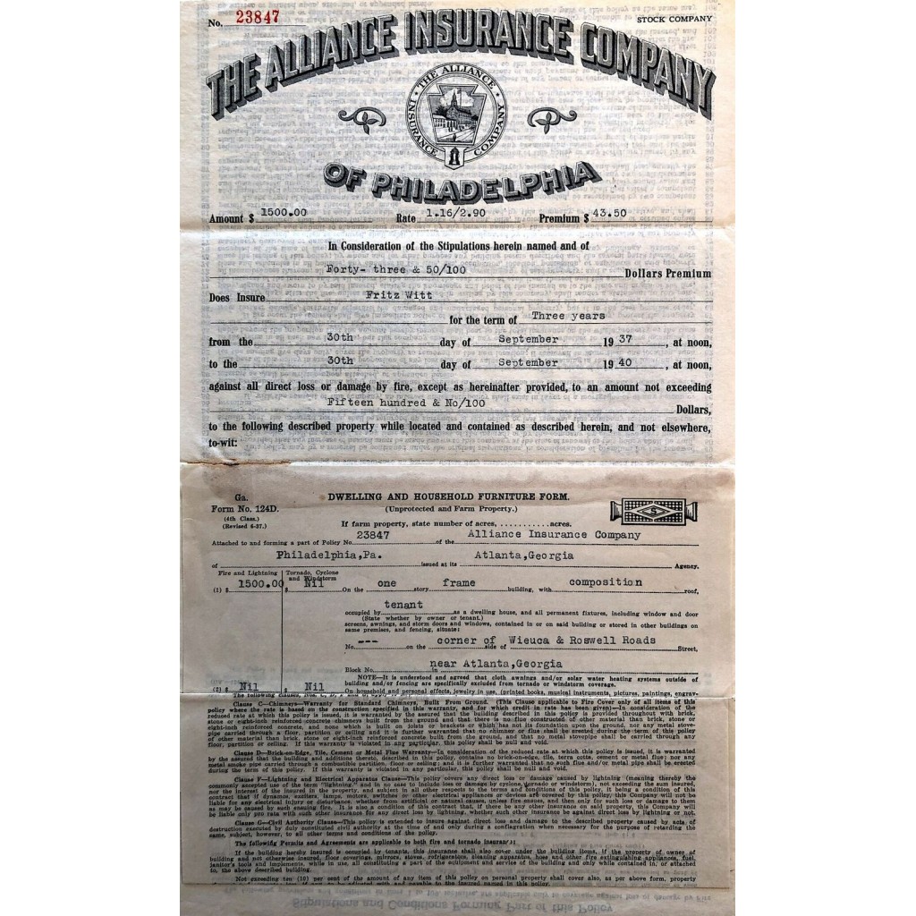 1937 - THE ALLIANCE INSURANCE COMPANY OF PHILADELPHIA