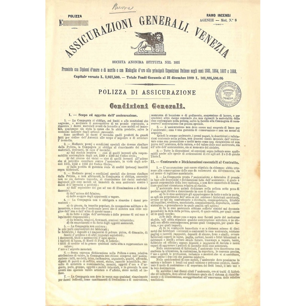 ASSICURAZIONI GENERALI. VENEZIA - POLIZZA DI ASSICURAZIONE