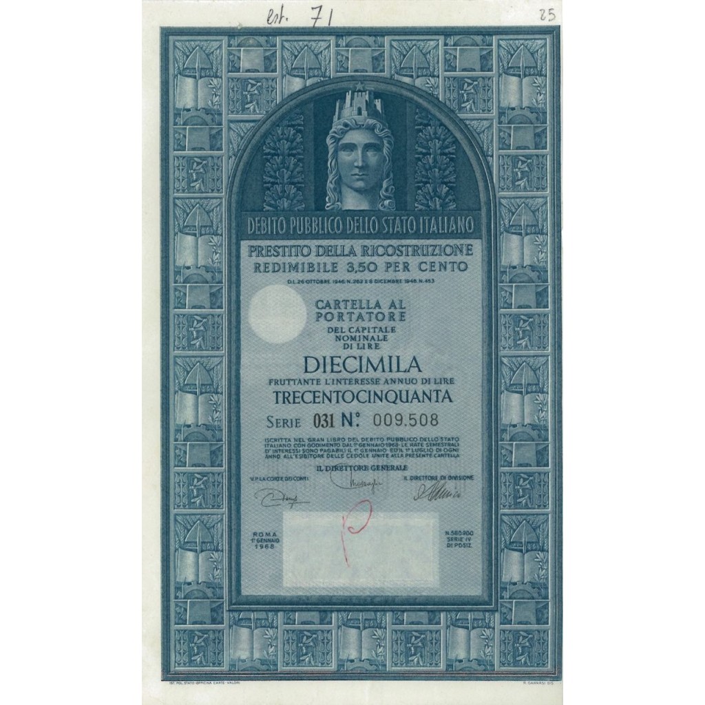 The 1947 Reconstruction Loan was a way for the Italian state to mobilise financial resources to tackle the difficult post-war reconstruction phase. By participating in the loan, investors contributed to the reconstruction of the country and, at the same time, received a fixed return on their investments.