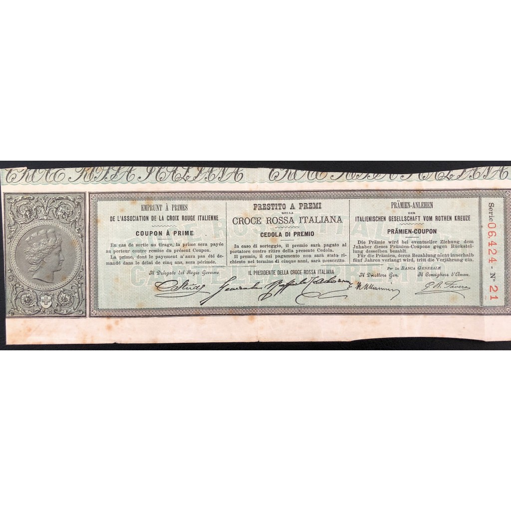 1886 PRESTITO A PREMI DELLA CROCE ROSSA ITALIANA SORTEGGIO CEDOLA PREMIO SERIE 06424 N: 21
