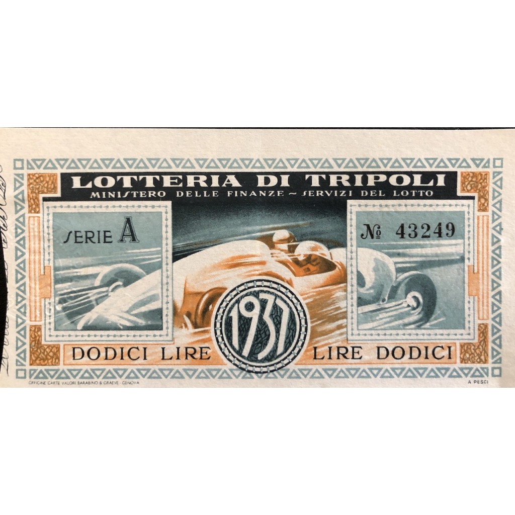 1937 - LOTTERIA DI TRIPOLI LIRE 12 SERIE A N: 43249
