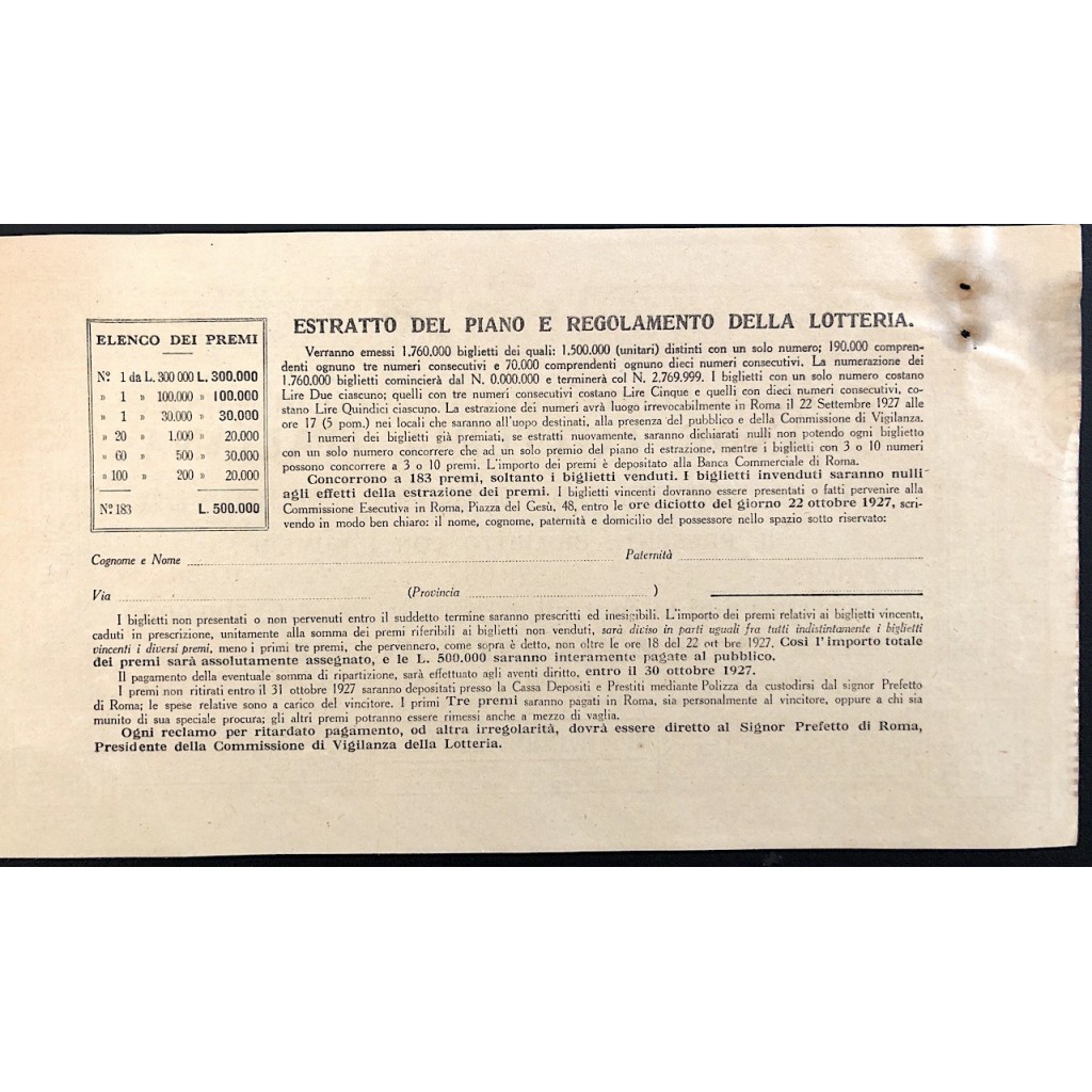 ESTRAZIONE IN ROMA 22 SETTEMBRE 1927