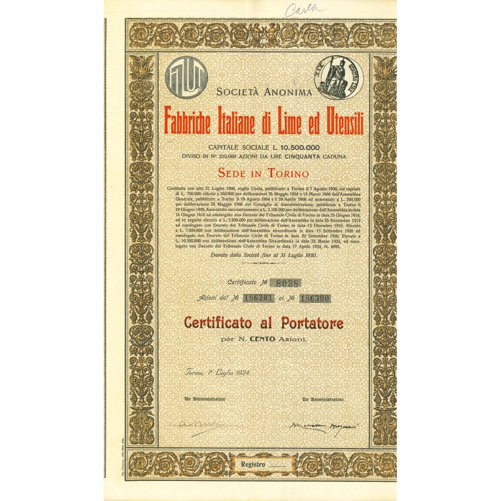 1924 - FABBRICHE ITALIANE DI LIME ED UTENSILI - 100 SHARES