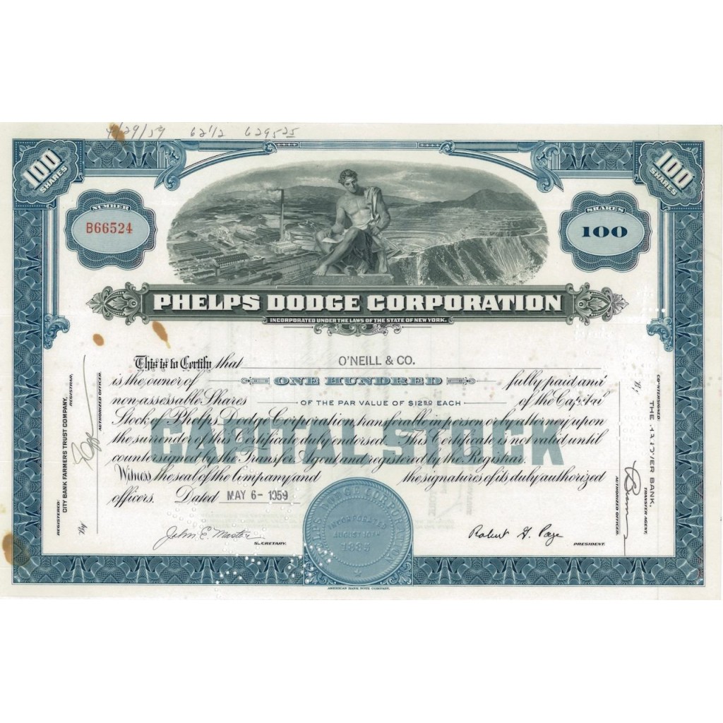 PHELPS DODGE CORPORATION - 100 AZIONI - 1959