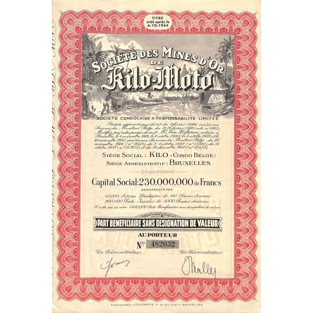 1940 - MINES D'OR DE KILO-MOTO SOC. DES