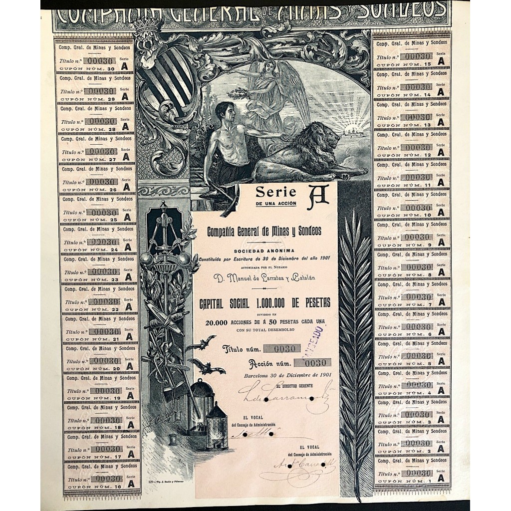 1901 - COMPANIA GENERAL DE MINAS Y SONDEOS - SERIE A - BARCELONA