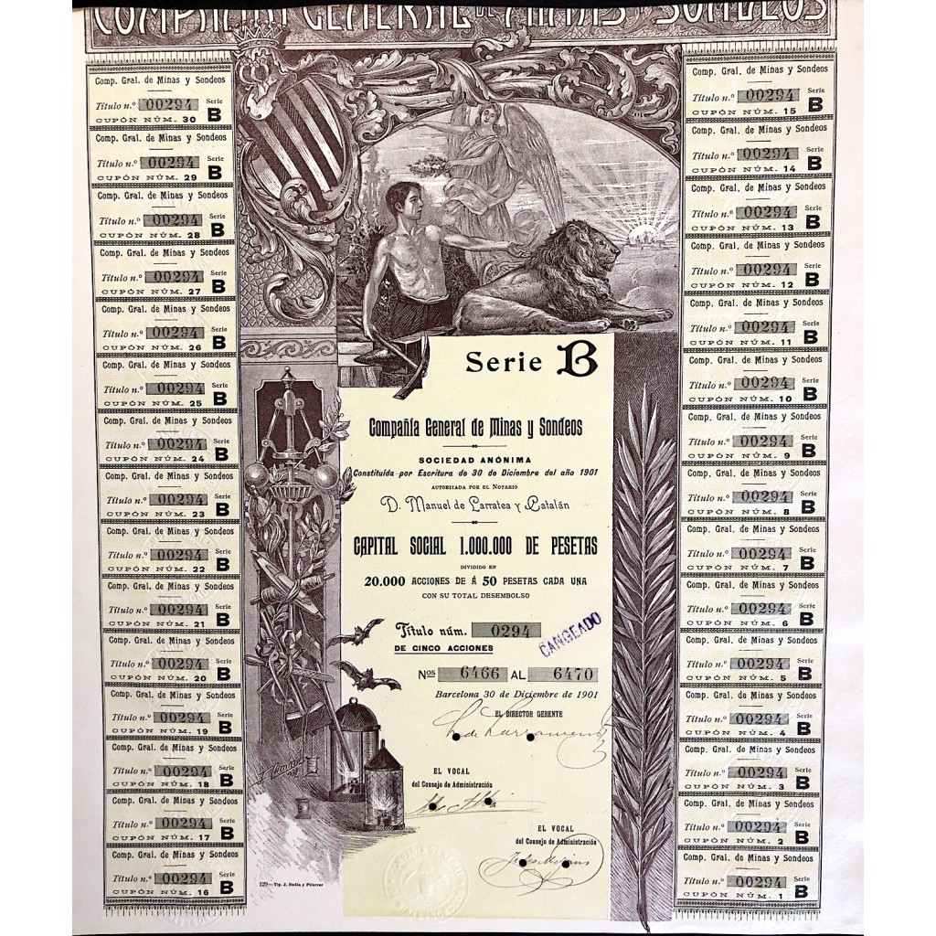 1901 - COMPANIA GENERAL DE MINAS Y SONDEOS - SERIE B - BARCELONA