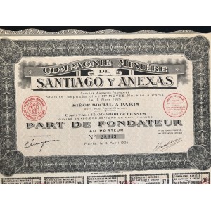1925 - COMPAGNIE MINIERE DE SANTIAGO Y ANEXAS - PART DE FONDATEUR