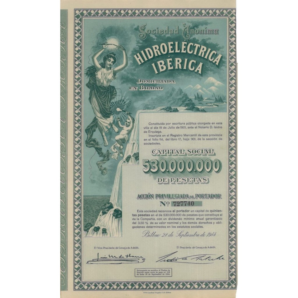 SOCIEDAD ANONIMA HIDROELECTRICA IBERICA - 1 AZIONE 1944