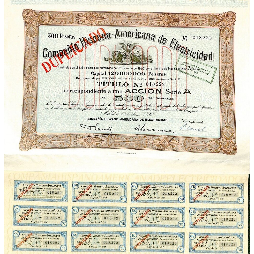 1920 - HISPANO-AMERICANA DE ELECTRICIDAD COMPANIA