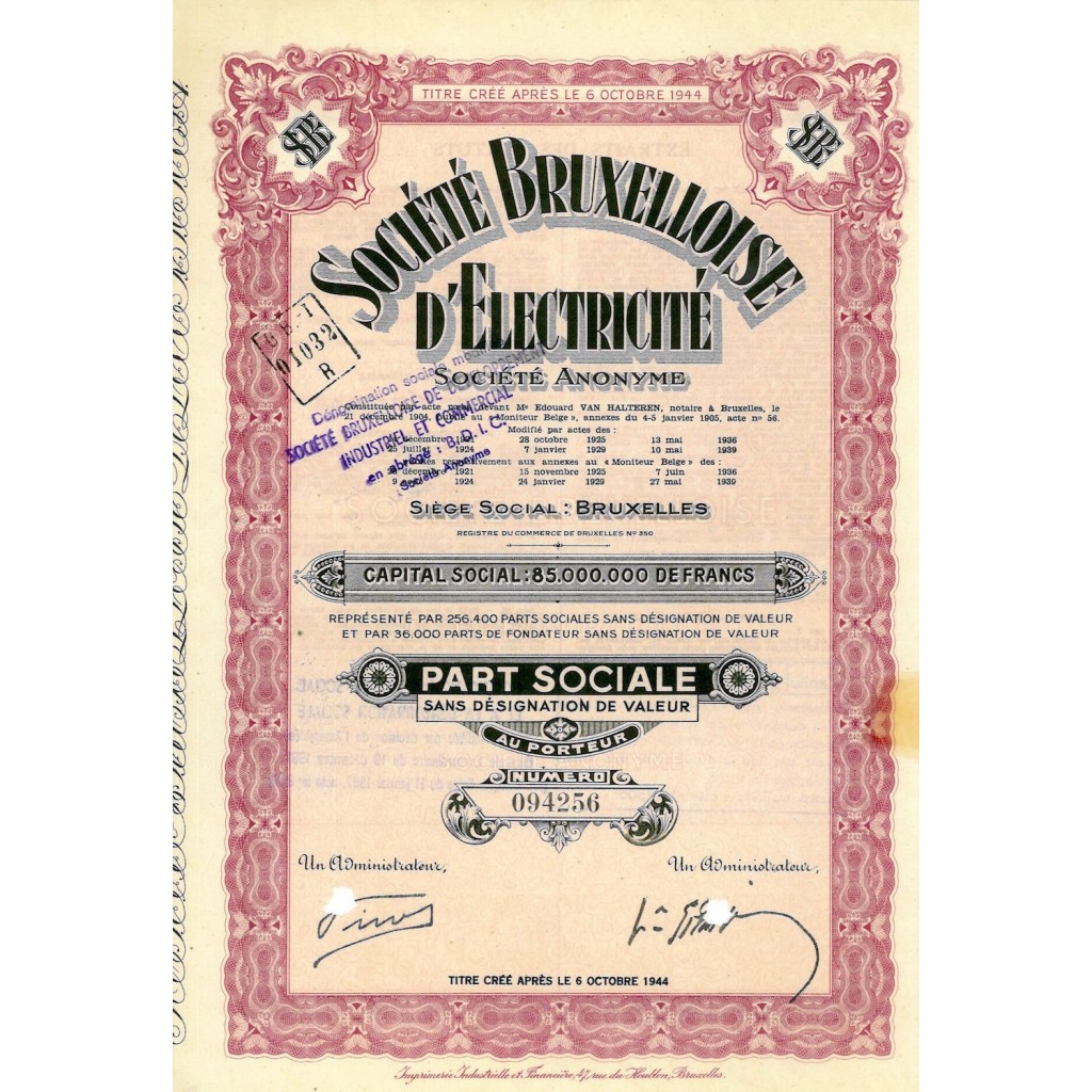 1944 - BRUXELLOISE D'ELECTRICITÉ SOC.