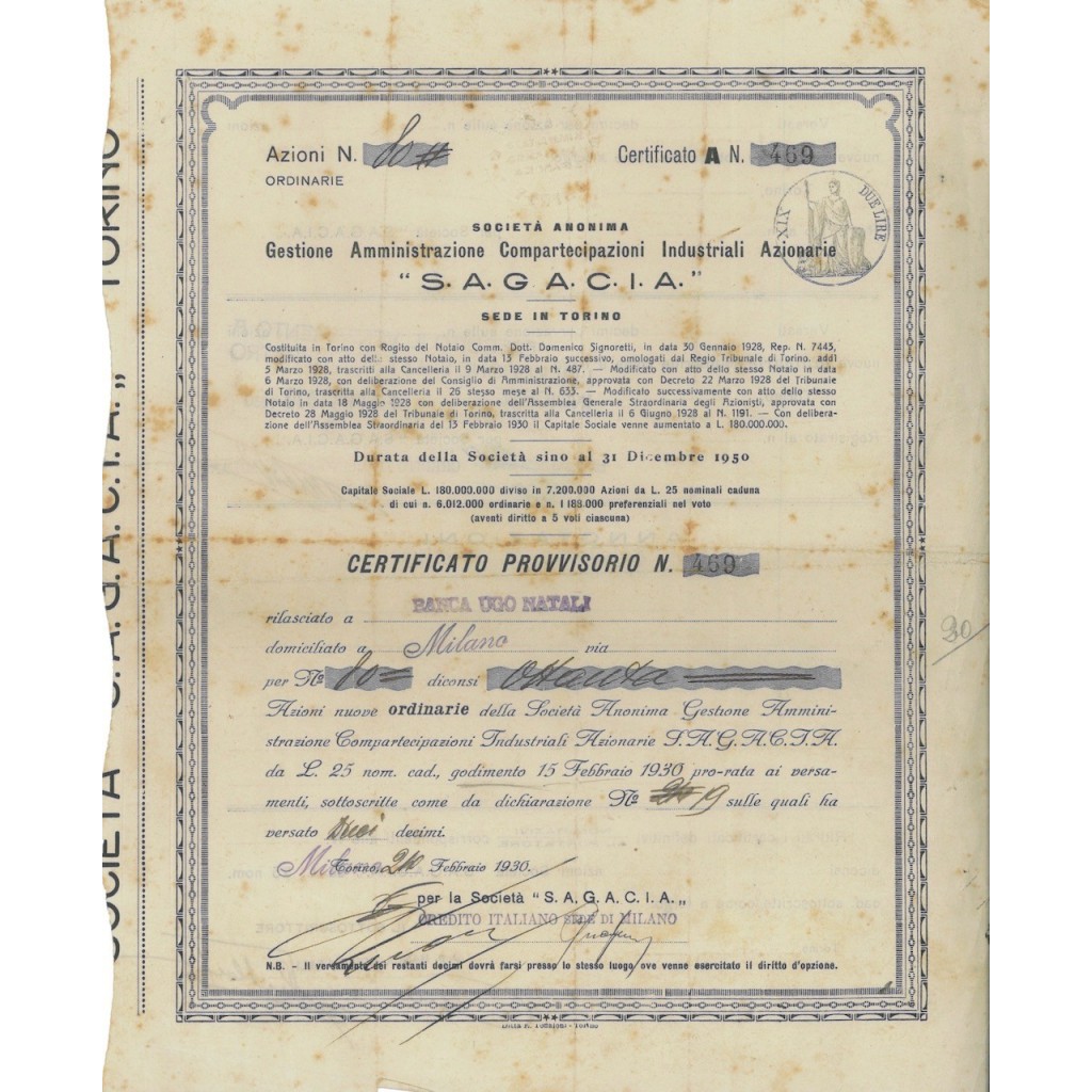 CERTIFICATO PROVVOSORIO DA 80 AZIONI