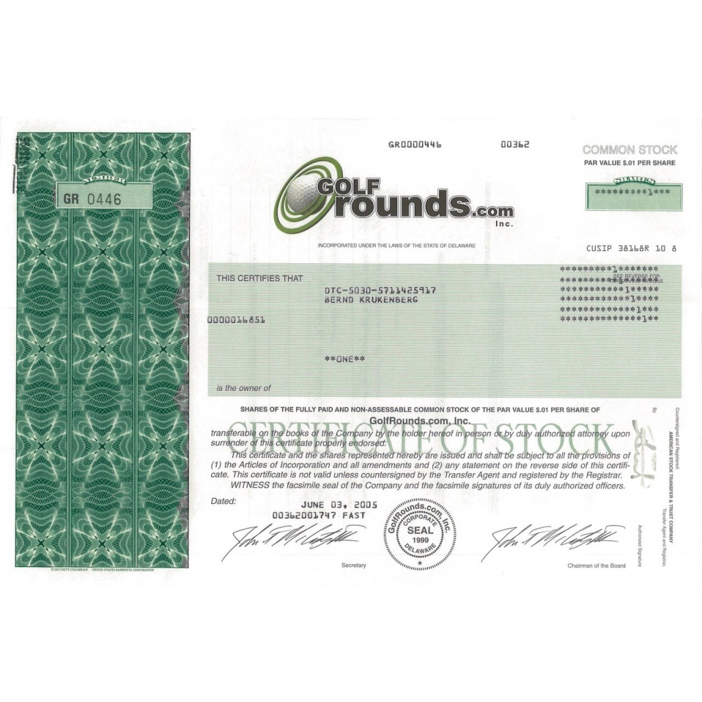 GOLF ROUNDS.COM INC. - 1 AZIONE - 2005