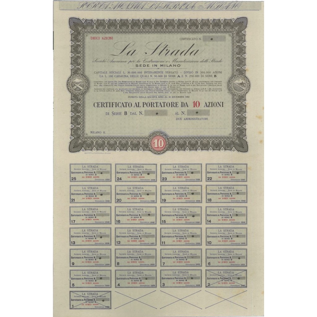 LA STRADA - SOC. ANON. PER LA COSTRUZIONE E MAN. STRADE - 10 AZIONI 1926
