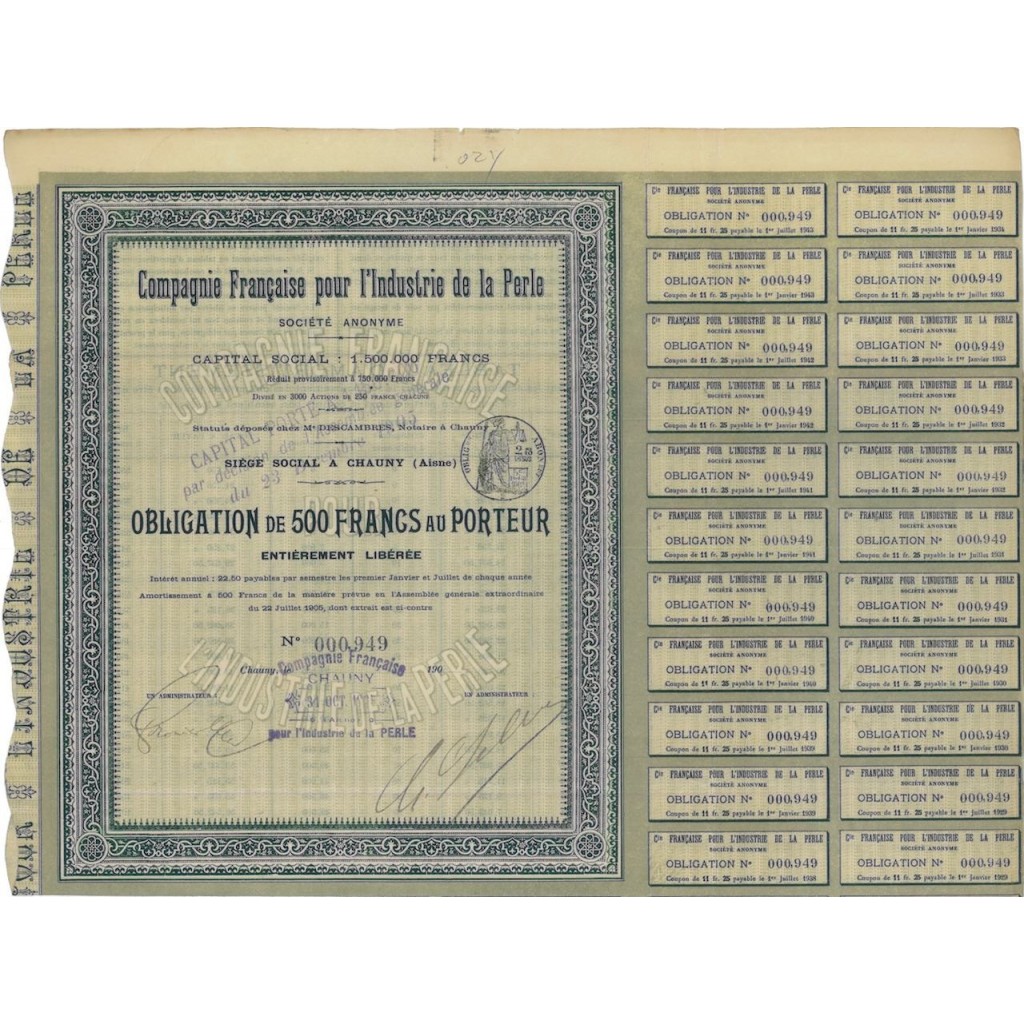 1 OBBLIGAZIONE AL PORTATORE DA 500 FRANCHI