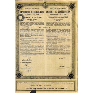 1934 - REGATUL ROMANIEI - IMPRUMUTUL DE CONSOLIDARE