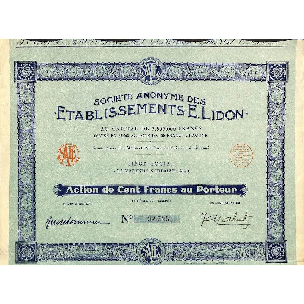 1925 - ETABLISSEMENTS E. LIDON