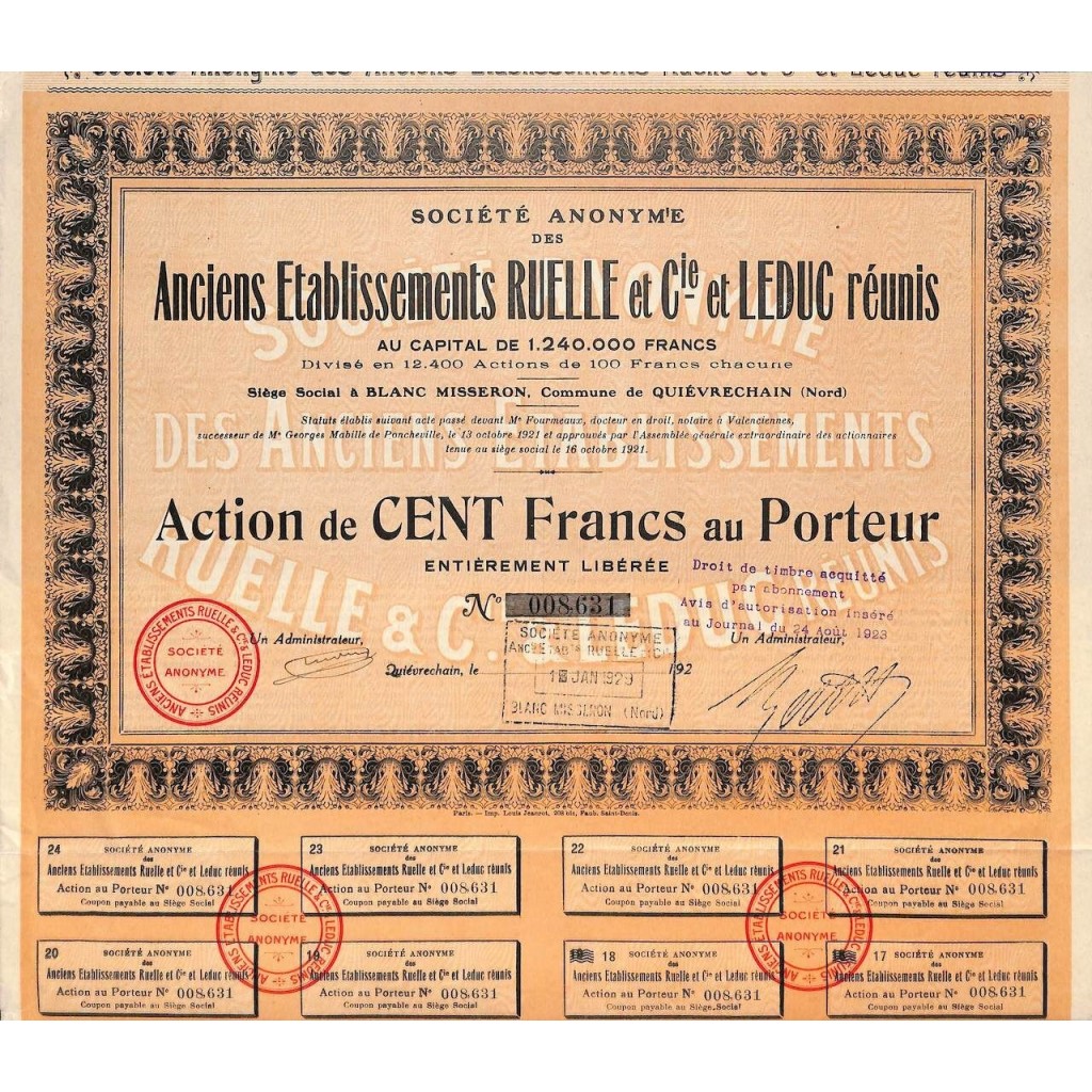 1929 - ANCIENS ETABLISSEMENTS RUELLE ET C.IE ET LEDUC REUNIS